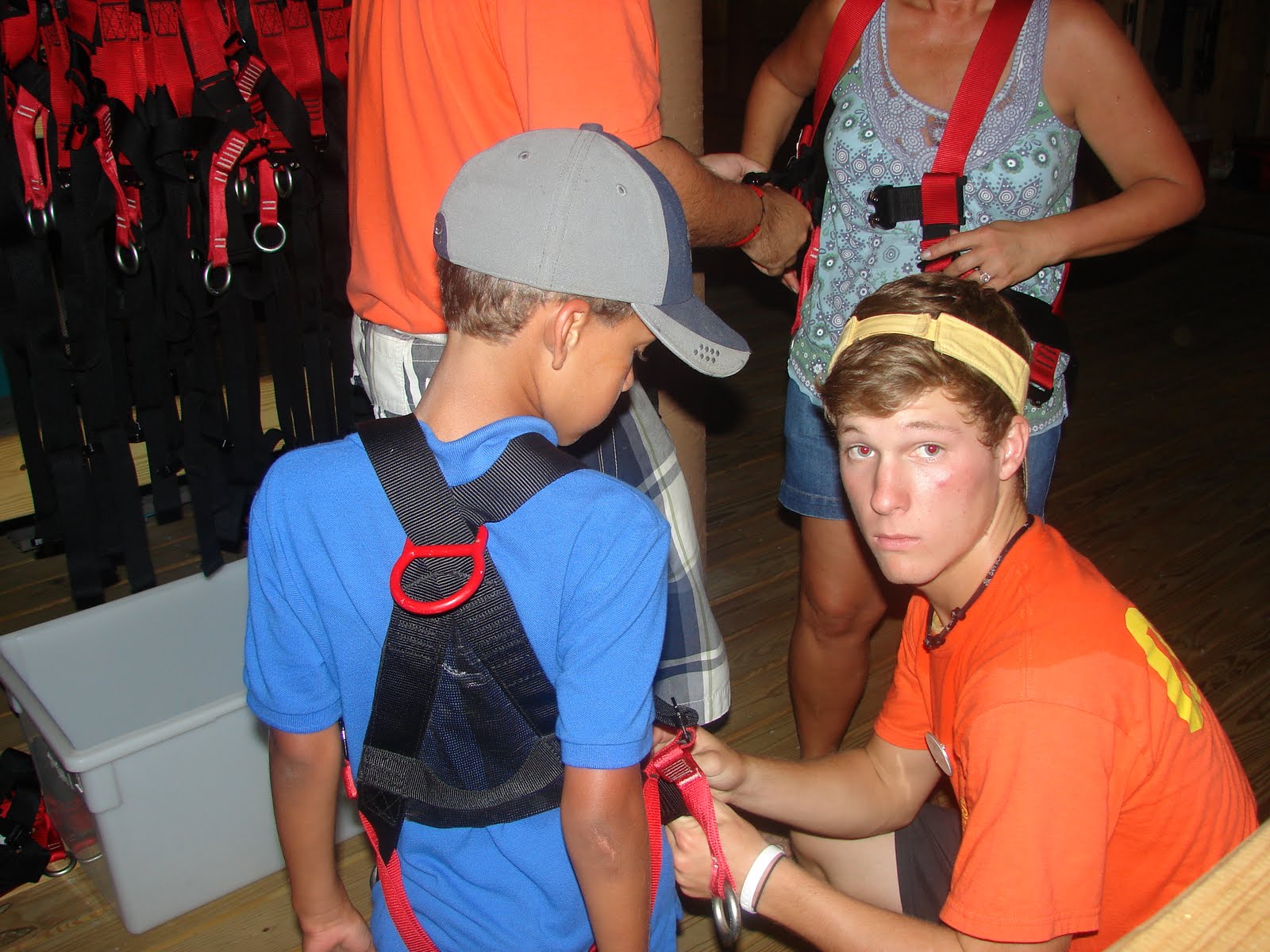 I asked the guy how they get down, and he replied, "Well they just go over there and unhook their belt and jump." With all seriousness, I said, "Oh, my son will never go for that, he just never does stuff like this!". I know the guy thought I was an idiot after he informed me that he was kidding and they would just come down the stairs!